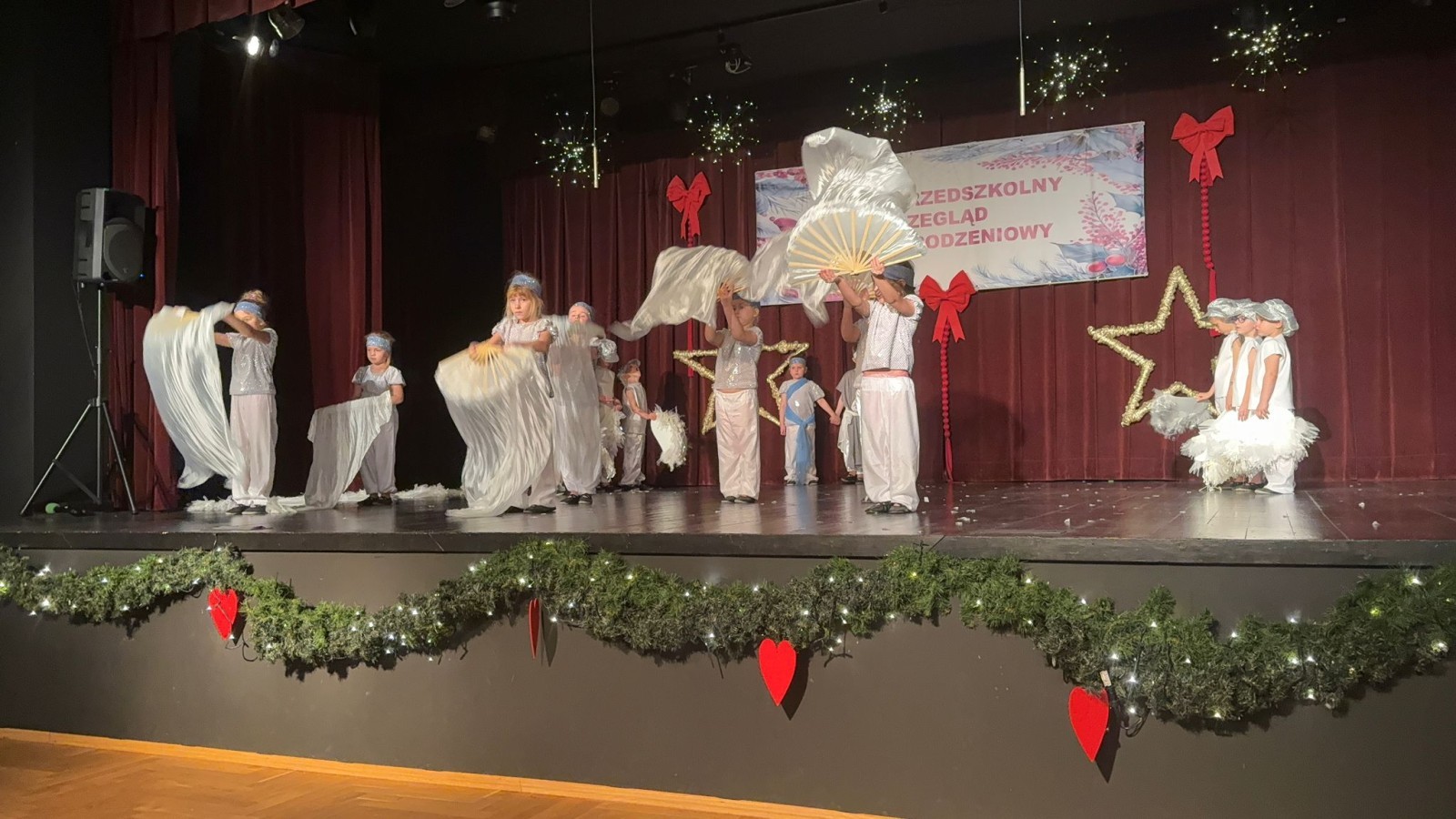29.01 starszaki reprezentowały nasze Przedszkole na XIX Międzyprzedszkolnym Przeglądzie Bożonarodzeniowym w Domu Kultury im. Wiktorii Kubisz. Po raz kolejny na scenie wystąpiły dzieci z bielskich przedszkoli tworząc świąteczną atmosferę, prezentując talenty i twórcze interpretacje bożonarodzeniowych tradycji. Występy były pełne radości, uśmiechów i wzruszeń, na długo zostaną w pamięci uczestników i widzów.